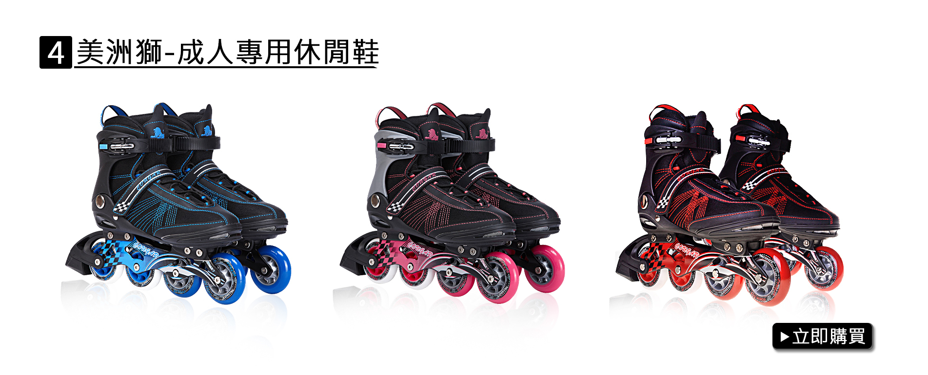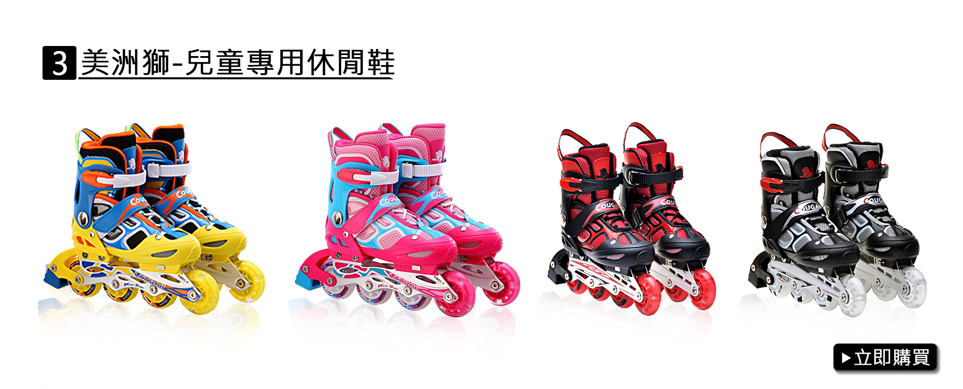 此款美洲獅兒童專用休閒鞋,適合有溜過直排輪一段時間的小朋友使用,其特點就是上鞋是全軟或半軟的,休閒鞋與其他鞋款最大的差別也在這裡。