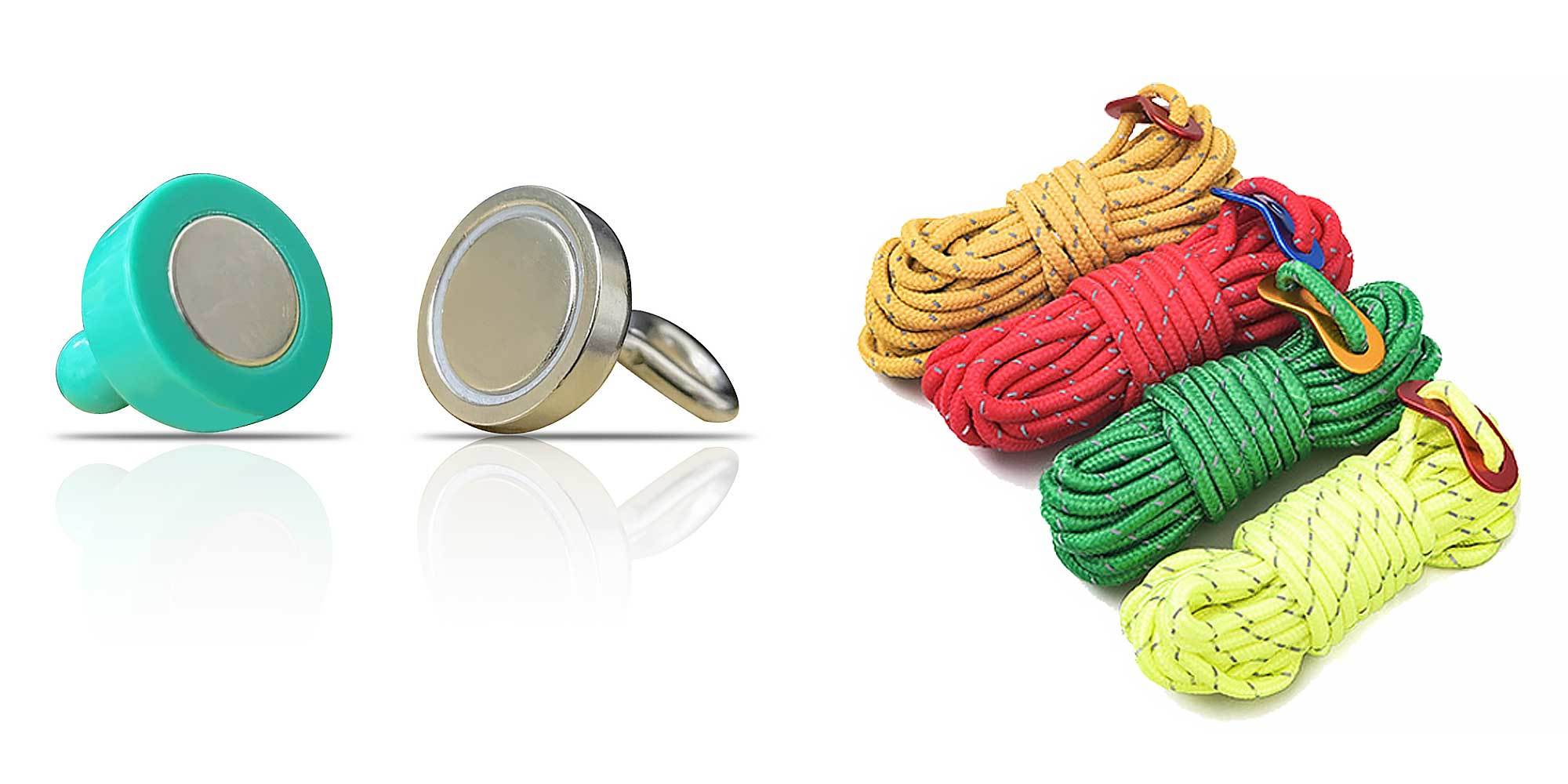 有分粗細、材質,目前經驗是4mm粗的就ok了,顏色以亮色為佳,綠色跟草地太接近,不易分辨。
