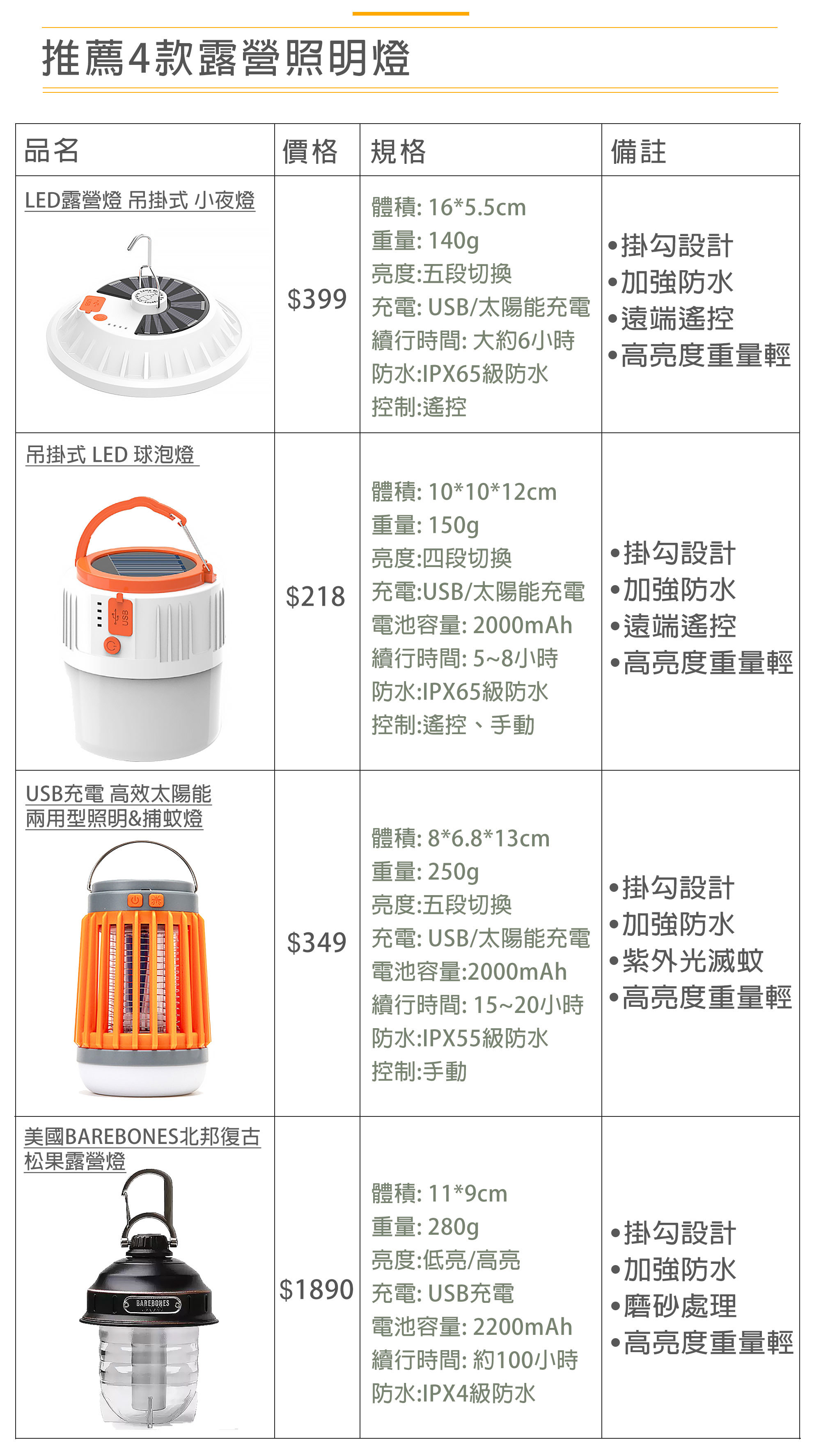 但價格上仍然需要三思,小編會比較推薦給入門露營者前三款露營燈,經濟實惠高CP值!