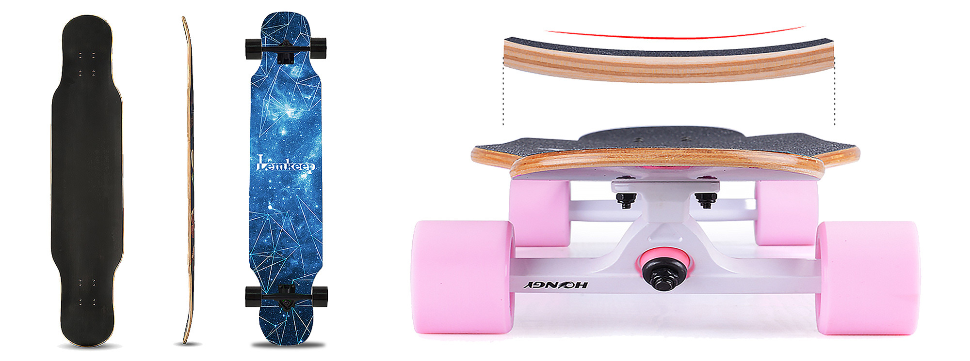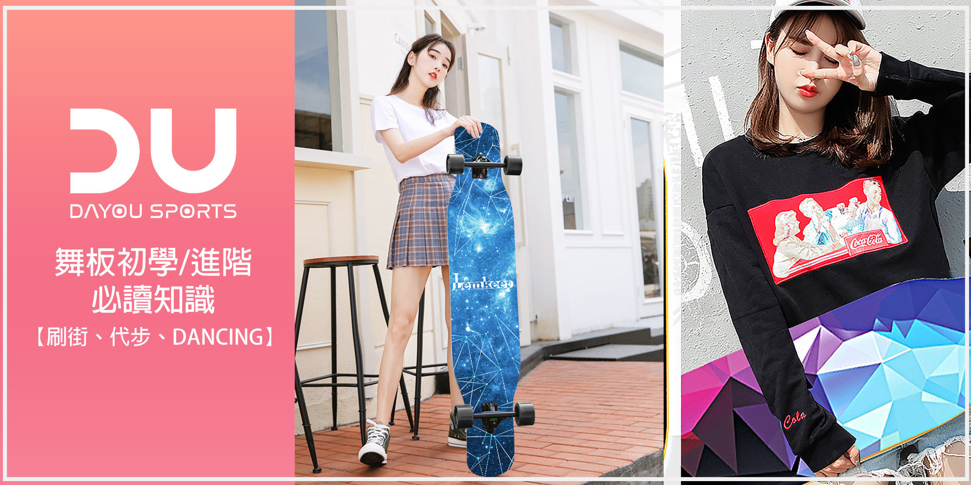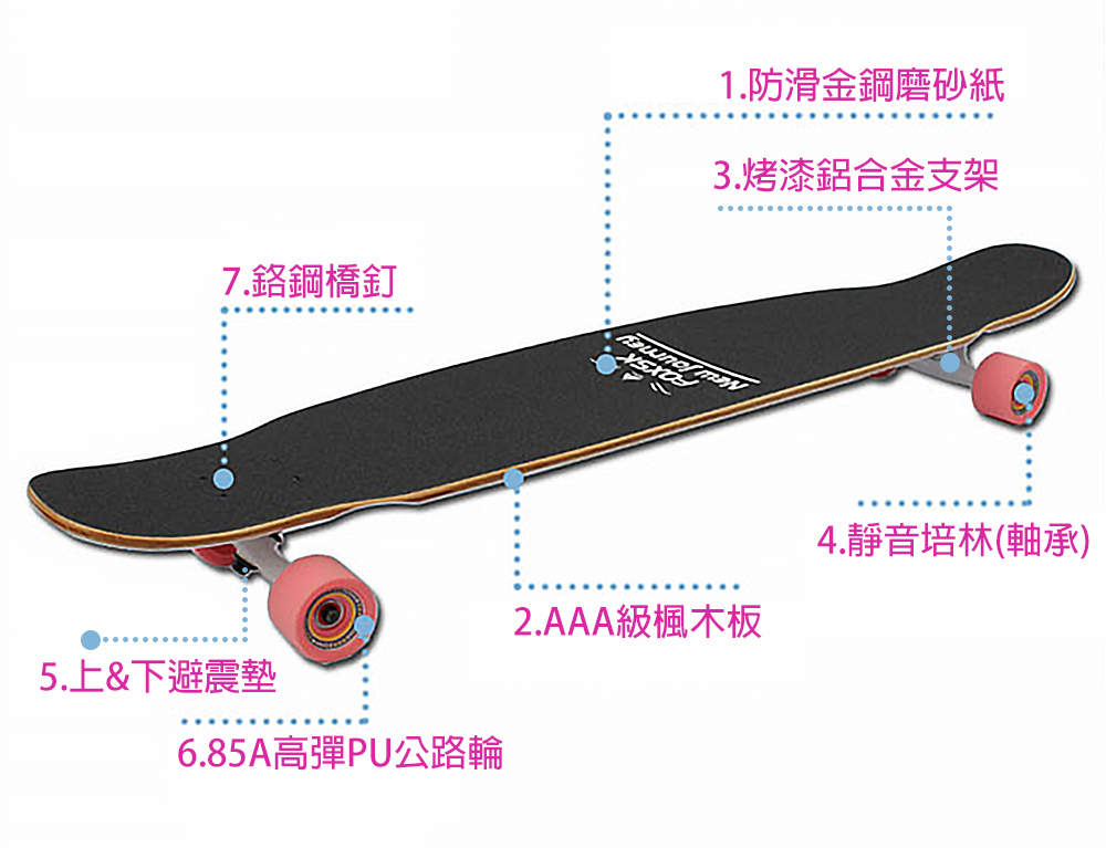 dancing不只追求滑行的快感更是女性滑出優美身姿的首選滑板,所以板身一般較長,高速時穩定性高。