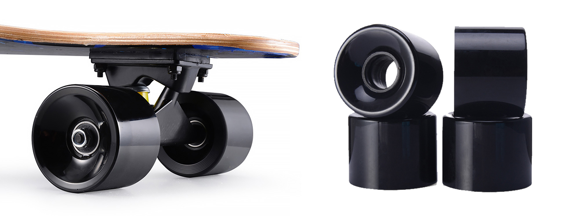 於滑板板身與橋架之間作為緩衝器,避震,轉向,緩衝等功能都是靠PU來實現,所以它很重要,同一形狀PU有高有矮,高度越高PU受壓後回彈越大!