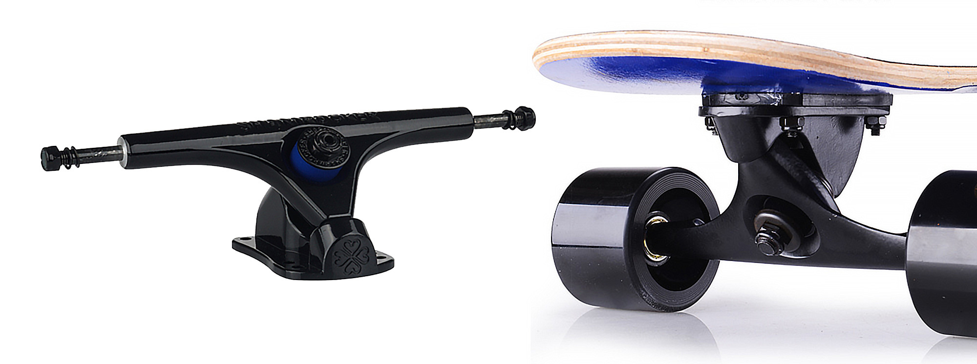 支架是整塊滑板的骨骼,它的功用除了支撐板和輪子之外,還有可以調整鋼架的軟硬度,亦決定了滑板在作左右轉彎的難易度。