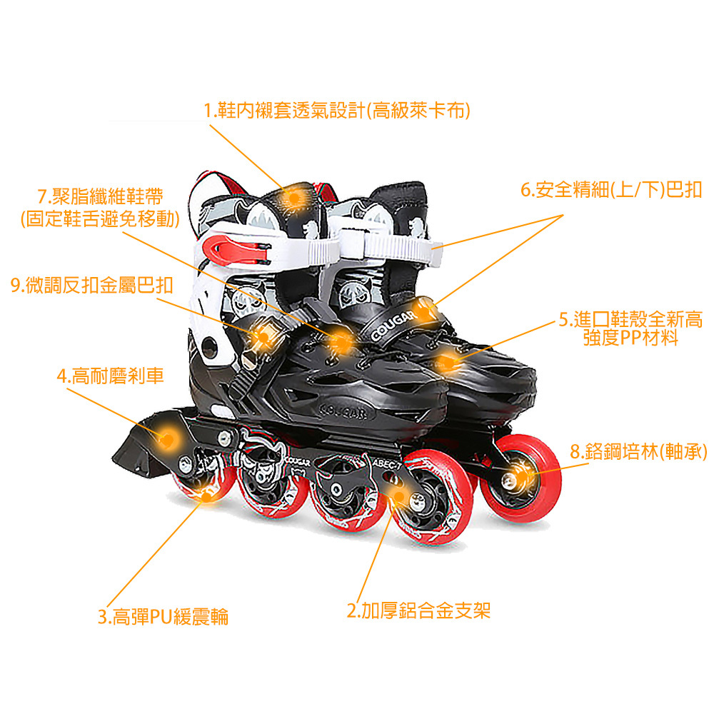 避免滑行時因腳前傾而造成鞋舌凸出,干擾並造成孩子們滑行安全。