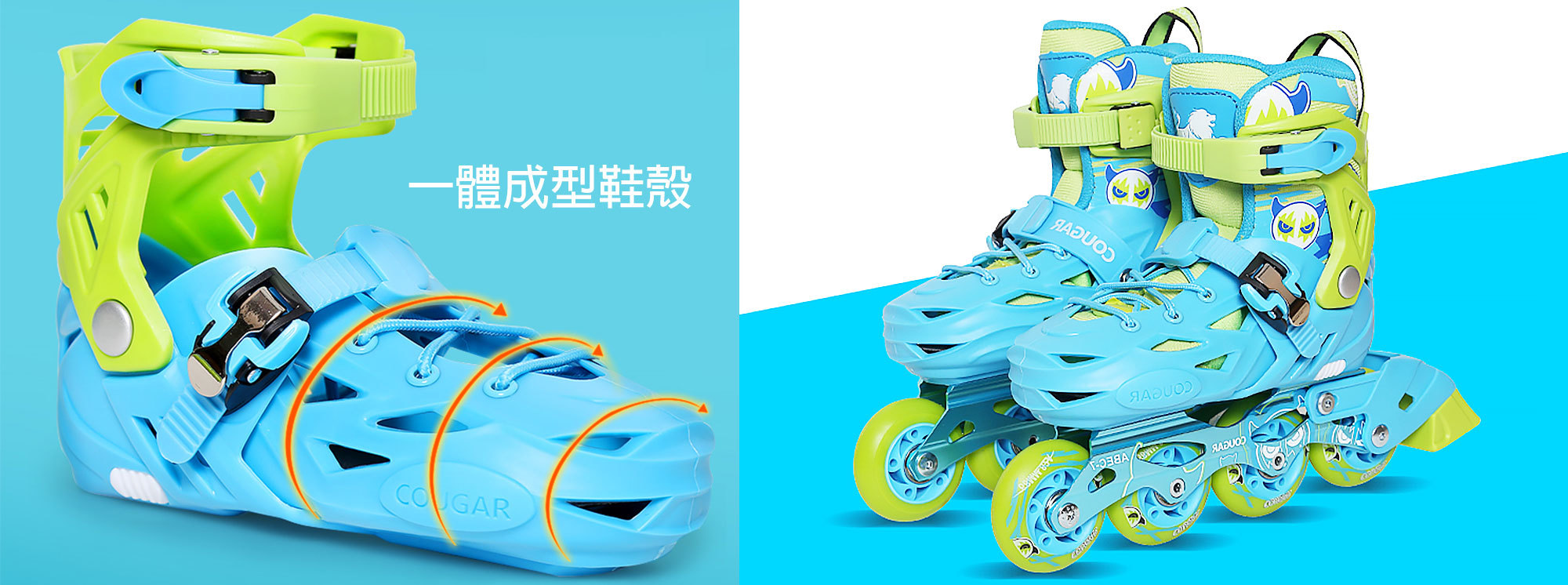 基本上孩子們上課所需要的一雙標準直排輪為一體成型硬殼直排輪,搭配鋁合金支架&高彈PU輪設計,不管是進階課程中的花式繞樁技巧或是初學課程的直線滑行,對於孩子們的腳部支撐及保護上是非常好的!