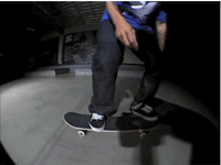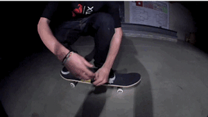 是滑板中的基礎動作,起跳後板在身下轉180度而用後腳向斜下方點板的同時前腳起跳,注意不要在空中踢到板,只要大膽跳起並用前腳去接板即可。