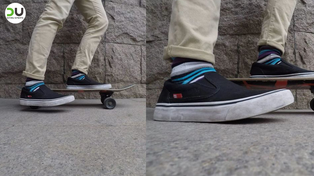 方法一、直接用後腳著地,藉由慢慢摩擦地面,讓滑板停止滑行。